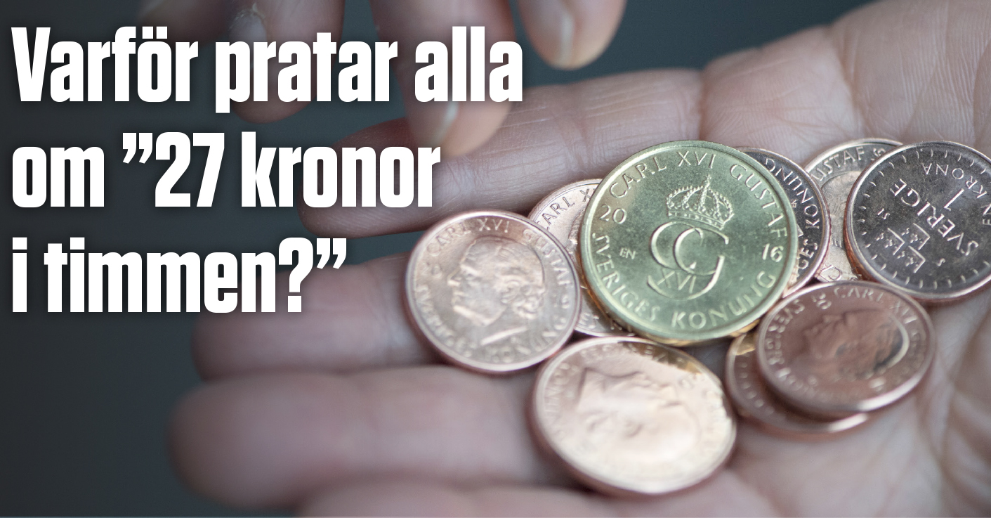 I debatten om regeringens förslag pratar förespråkarna ofta om att ingen ska behöva jobba för 27 kronor i timmen. Det kommer från Sveriges Radios dokumentär Taxikungen, som visade på de låga ersättningarna för taxichaufförer som kör upphandlad färdtjänst, som lägst 27 kronor i timmen.