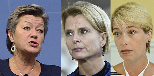 Ylva Johansson, Åsa Regnér och Annika Strandhäll. Foto: TT