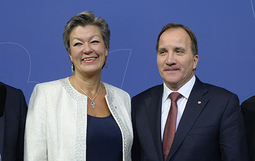 Arbetsmarknads- och etableringsminister Ylva Johansson (S) och statsminister Stefan Löfven (S). Foto: Bertil Ericson/TT