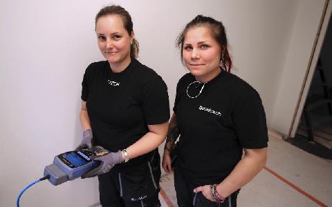 Caroline, från Luleå, började som elektriker 2012 och har hållit på en hel del med fiber och data. Linda, från Råneå, började 2007 och har arbetat mycket med larm, passage, datornät och övervakningssystem. De trivs med sitt yrkesval och glädjer sig åt att det börjar bli fler tjejer inom yrket.