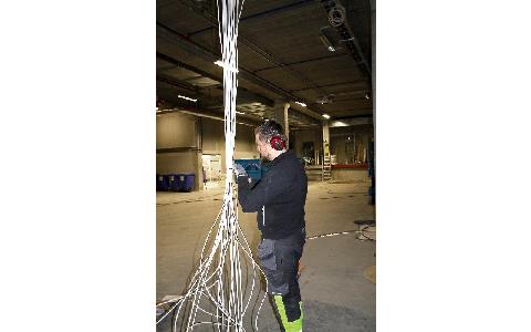 I fabriken arbetar man sedan i våras tvåskift. 05.30-14.30 och 15.00 till 01.00. Här arbetar nio elektriker. Det är Bravida som har kontraktet just nu.