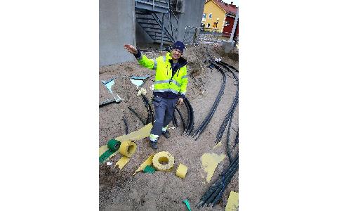 Här har Assemblin utfört entreprenad på 4 000 timmar, också det ett ackordsjobb. Vi träffar Anders Bergdahl från Kalix och Joakim Nittikko från Sunderbyn som visar runt. Man har monterat ställverket, ordnat belysning och kopplar ihop kraftkablarna in och ut från stationen. Firman har gott om jobb och söker nytt folk.