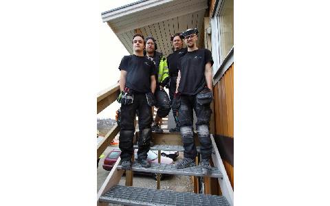 Vi träffar eftermiddagsskiftet och Jonas Lundqvist från Piteå visar oss runt på fabriken och demonstrerar hur elektrikernas jobb går till. Man arbetar inomhus i fabriken men det är också elektriker som gör slutmontagen på plats när husen sätts ihop. Man har förhandlat fram en slags garantilön som ligger runt 205 kr/timmen.
