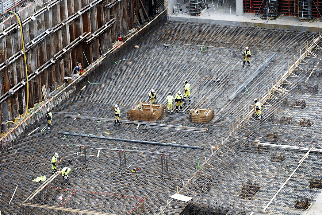 Oslo, Norway 20160426. Arbeidere i arbeid, Byggeplass. Bygg og anlegg. Anleggsplass og byggegrop for det nye Nasjonalmuseet p Vestbanetomta. Foto: Gorm Kallestad / NTB scanpix / TT / kod 20520