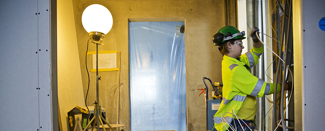 Stockholm. Vi följer elektrikern Elin Gustafsson Fagerlind under några timmar av hennes arbetsdag. Foto: Anna Simonsson