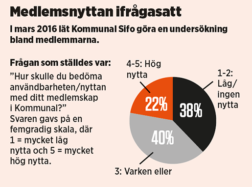 Totalt har Kommunal tappat 11 400 medlemmar sedan skandalen. I förlängningen påverkar det LO:s styrka som organisation. Enligt LO:s preliminära siffror för 2016 stod Kommunal för mer än hälften av medlemstappet på 20 000. Något som medlemssiffrorna inte säger något om är hur engagemanget i förbundet påverkats. Elisabeth Nordvåg lämnade sitt uppdrag som arbetsplatsombud, går inte på medlemsmöten och tänker inte sitta i valberedningen igen.