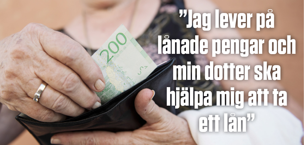 Jag lever ensam, bor i hus och har bil och därför inte rätt till socialbidrag. Bilen är värld 4 000-5 000 kronor. Jag lever på lånade pengar och min dotter ska hjälpa mig att ta ett lån om jag inte får ta det själv. Eftersom jag har noll kronor i inkomst just nu så vet jag inte hur det fungerar.”