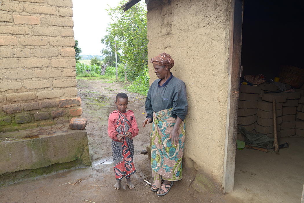 Tre av barnbarnen bor hos Taines Mwanalubusya. Foto: Petter Bolme (klicka på bilden för att se den större)
