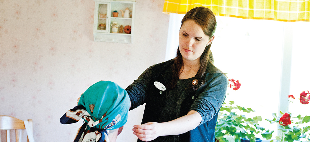 Madeleine Karlsson, skyddsombud för Kommunal i Leksand, stred i flera år för att hon och hennes kollegor i hemtjänsten skulle få arbetskläder. Foto: Ulf Palm/TT