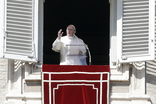Pope Francis delivers his blessing during the Angelus noon prayer he delivered from his studio's window overlooking St. Peter's Square, at the Vatican, Sunday, Feb. 26, 017. (AP Photo/Gregorio Borgia)