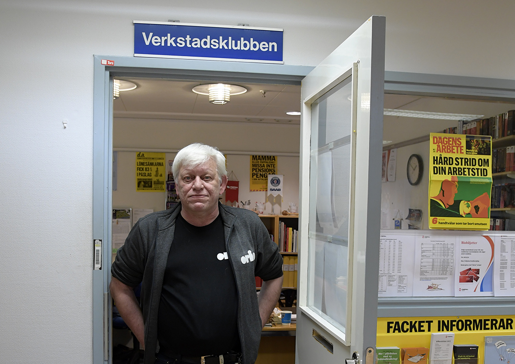 Vi är uppe vid personalrestaurangen Drivknuten, som just har serverat falukorv och stuvade morötter. Och vid verkstadsklubbens lilla lokal, där ordföranden Ingemar Sandberg huserar.