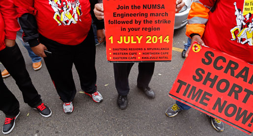Strejkande demonstranter i Kapstaden. I dag tågar hundratusentals strejkande gruvarbetare i hela Sydafrika. Foto: AP/Schalk van Zuydam