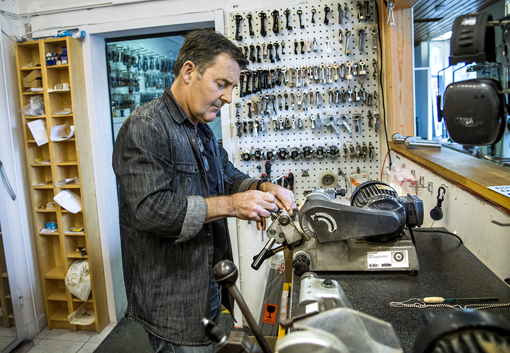 Göran Svensson i verkstaden. Inte sällan får han rycka ut till kunder som låst sig ute.