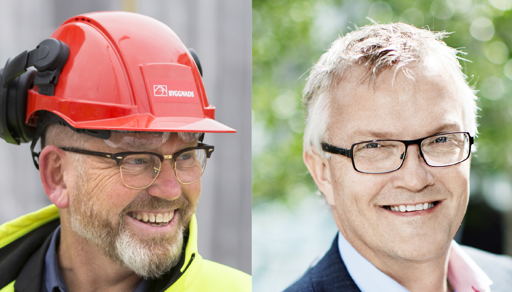 Johan Lindholm, ordförande Byggnads och Mats Åkerlind, tf vd Sveriges Byggindustrier. Foto: Byggnads och Sveriges Byggindustrier