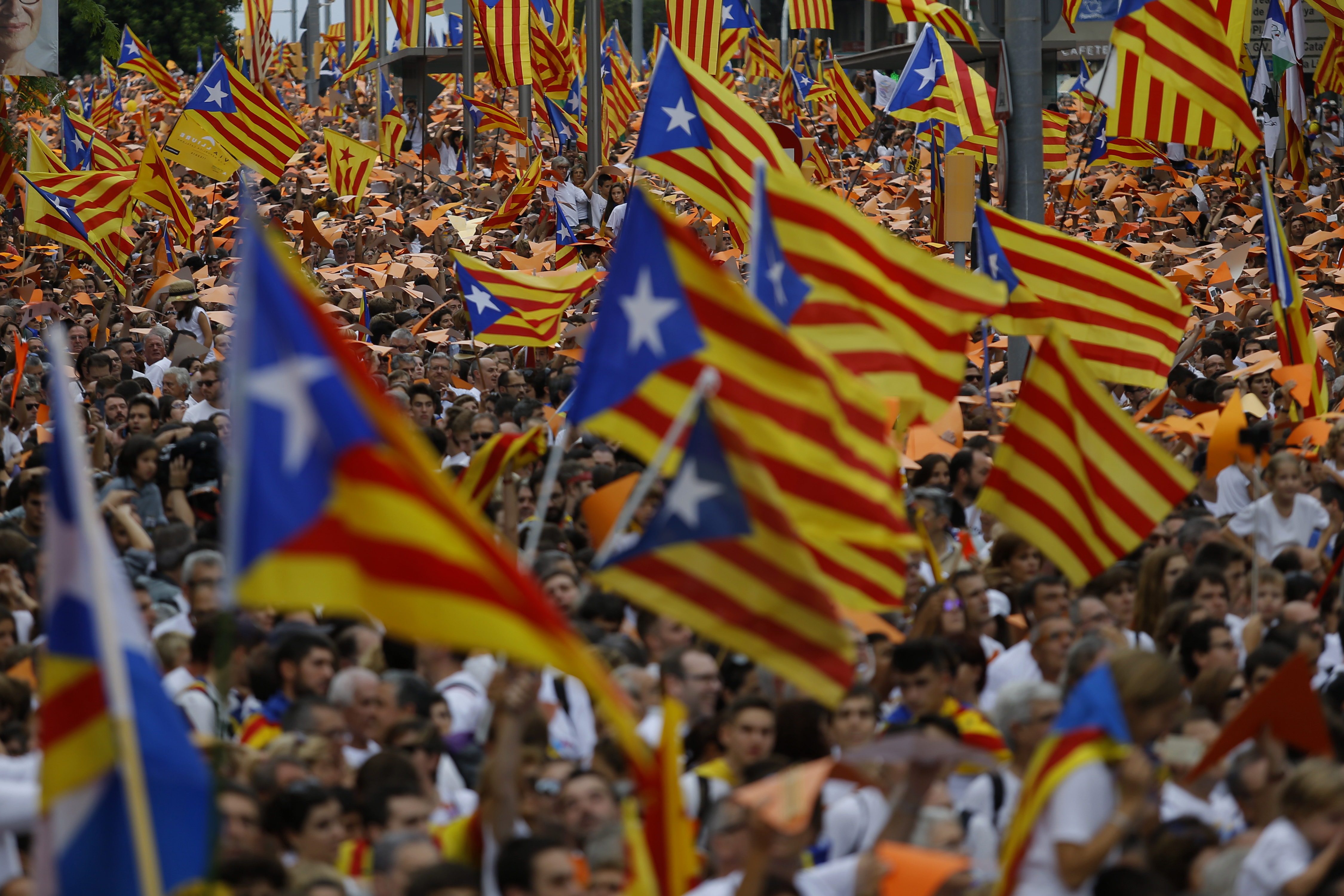 Katalaner demonstrerar för ett självständigt Katalonien.