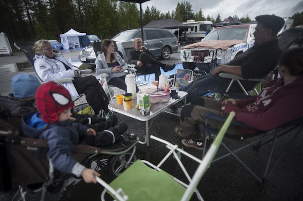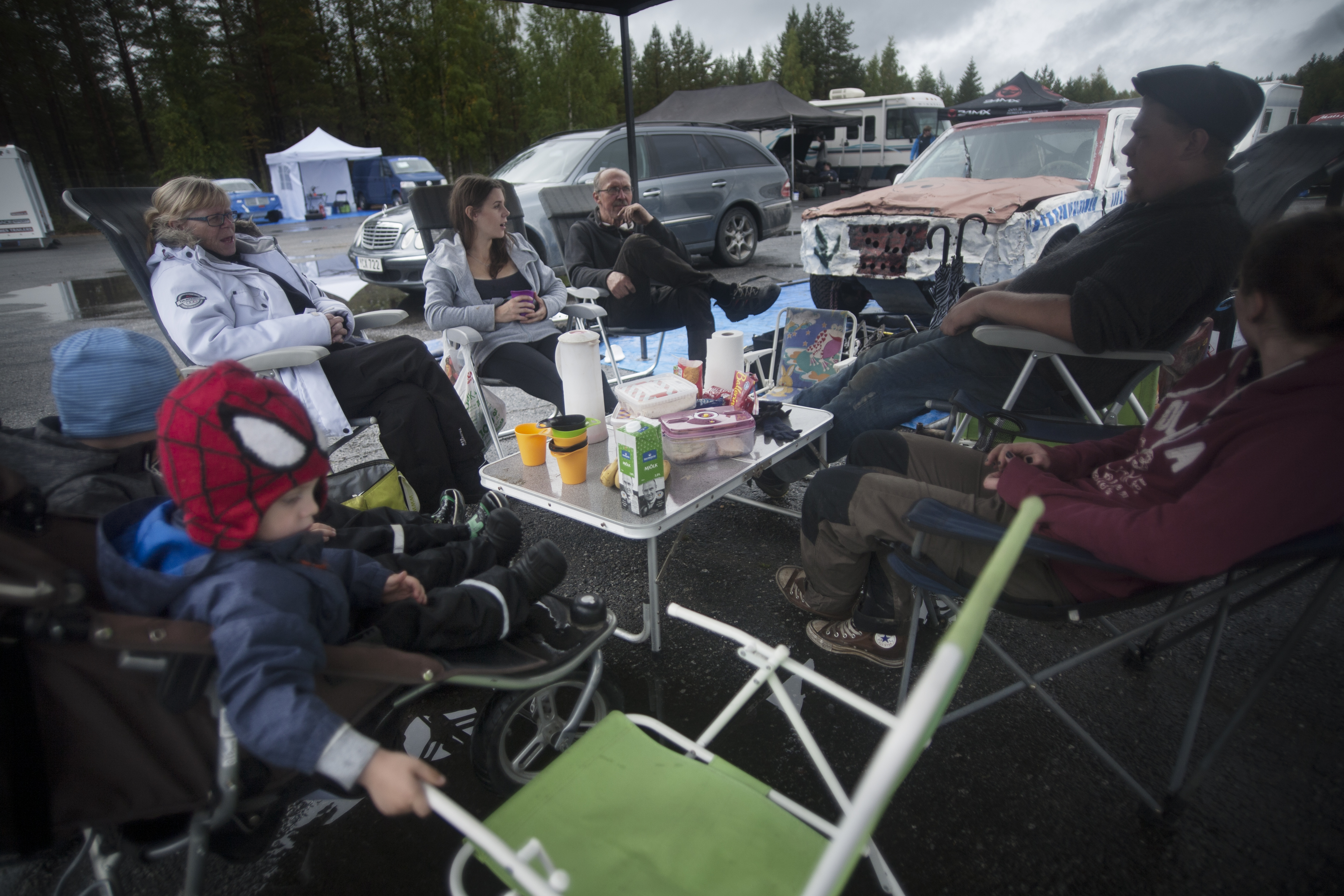 Familjen Nordin äter frukost tillsammans inför att tävlingen ska dra igång. Bilarna är säkerhetsbesiktigade och redo. Både Ewelina Nordin och hennes bror Erik Nordin tävlar. Foto: André Larsson
