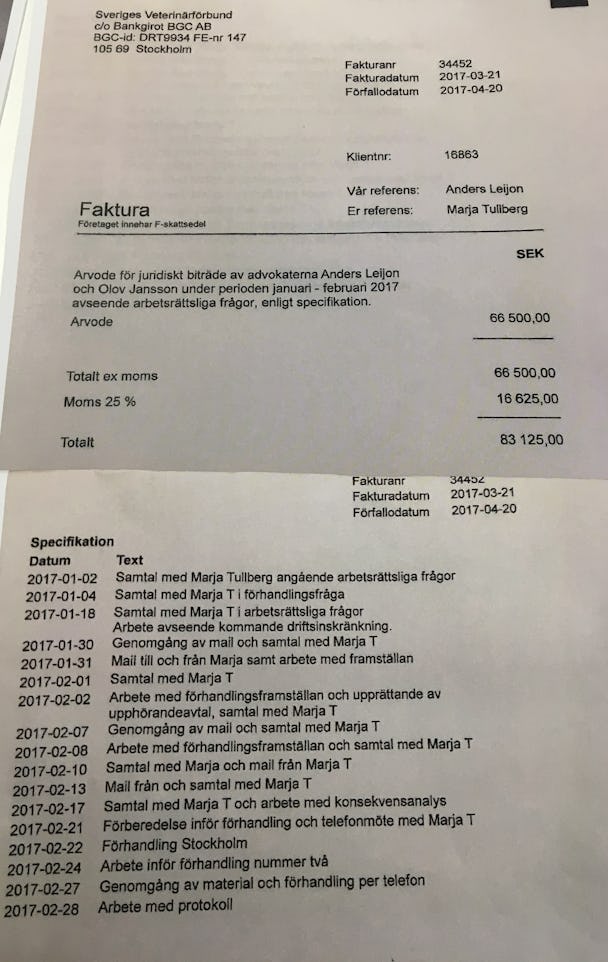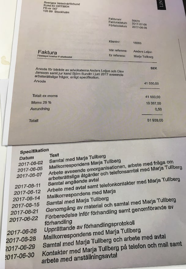 Fakturor från Lindahls advokatbyrå till Sveriges Veterinärförbund uppgår totalt till 264 966 kronor. (Bilden är ett montage)