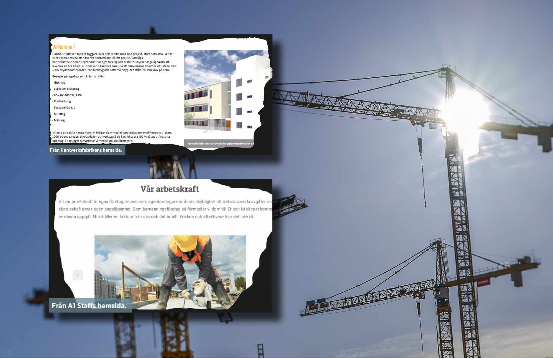 Redan 2008 försökte facket driva den linjen förhandlingsvägen, utan framgång. Samma år skrev tidningen Byggvärlden om hur företagarna från Hantverksfabriken jobbade vidare när de svenska arbetarna på samma bygge gick hem för dagen.