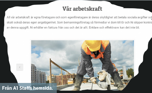 Där uppger de att fördelar med att anlita arbetskraft via bolaget är bland annat priset och att man kan få arbete utfört utanför ordinarie arbetstidsramar.