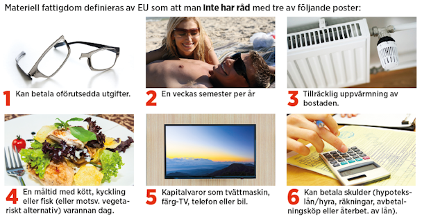 Enligt EU:s definition anses en individ vars inkomst understiger 60 procent av medianinkomsten i ett land leva i risk för fattigdom.