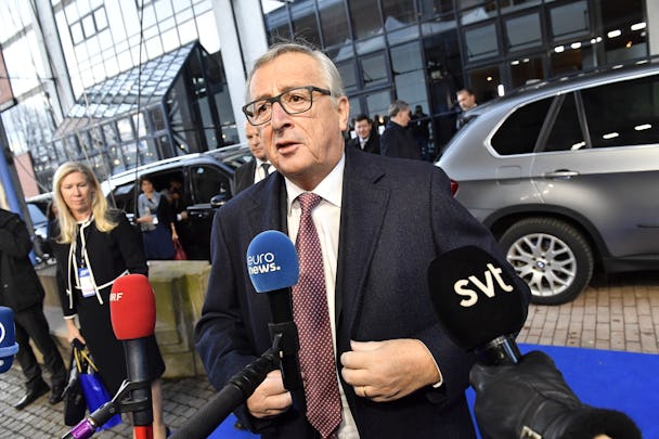 Jean-Claude Juncker har precis skämtat och sagt att han inte hängt med alls i vad som hänt eftersom han varit tvungen att springa mellan de olika rummen där EU-ländernas regeringschefer diskuterat arbetsmarknad och sociala förhållanden.
