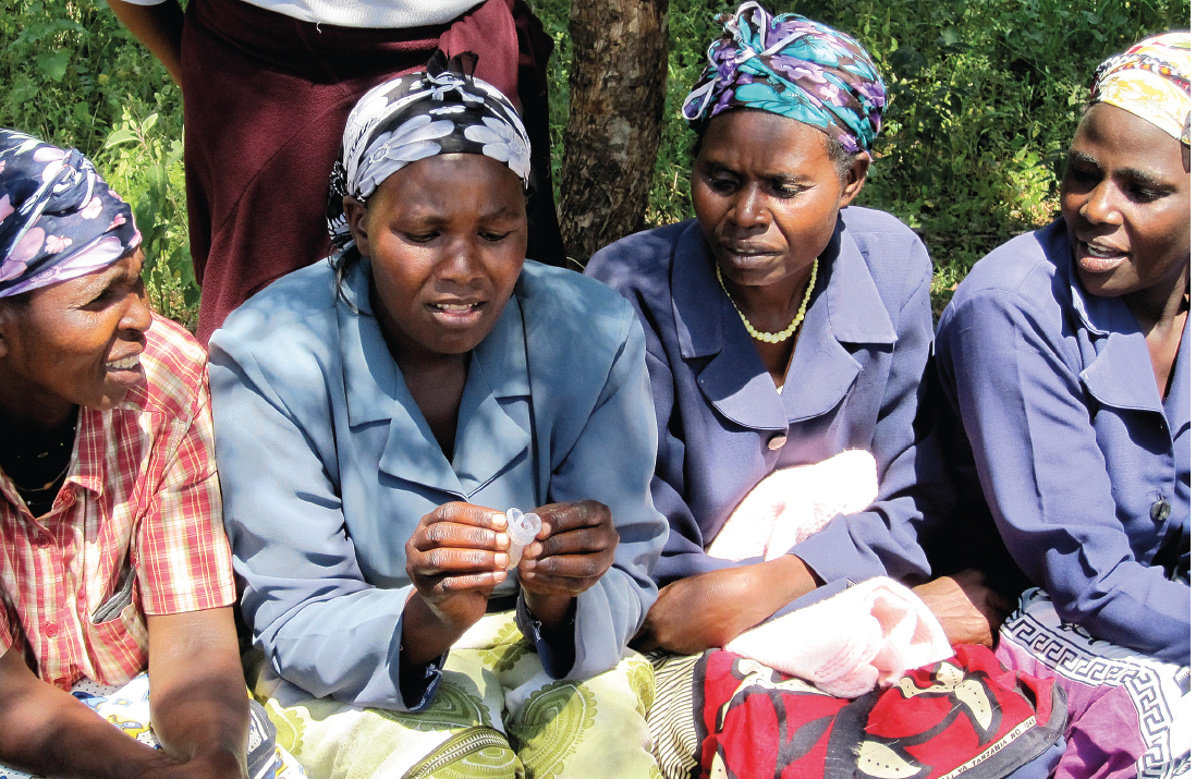 Kenyanska kvinnor får en introduktion i användning av menskopp.