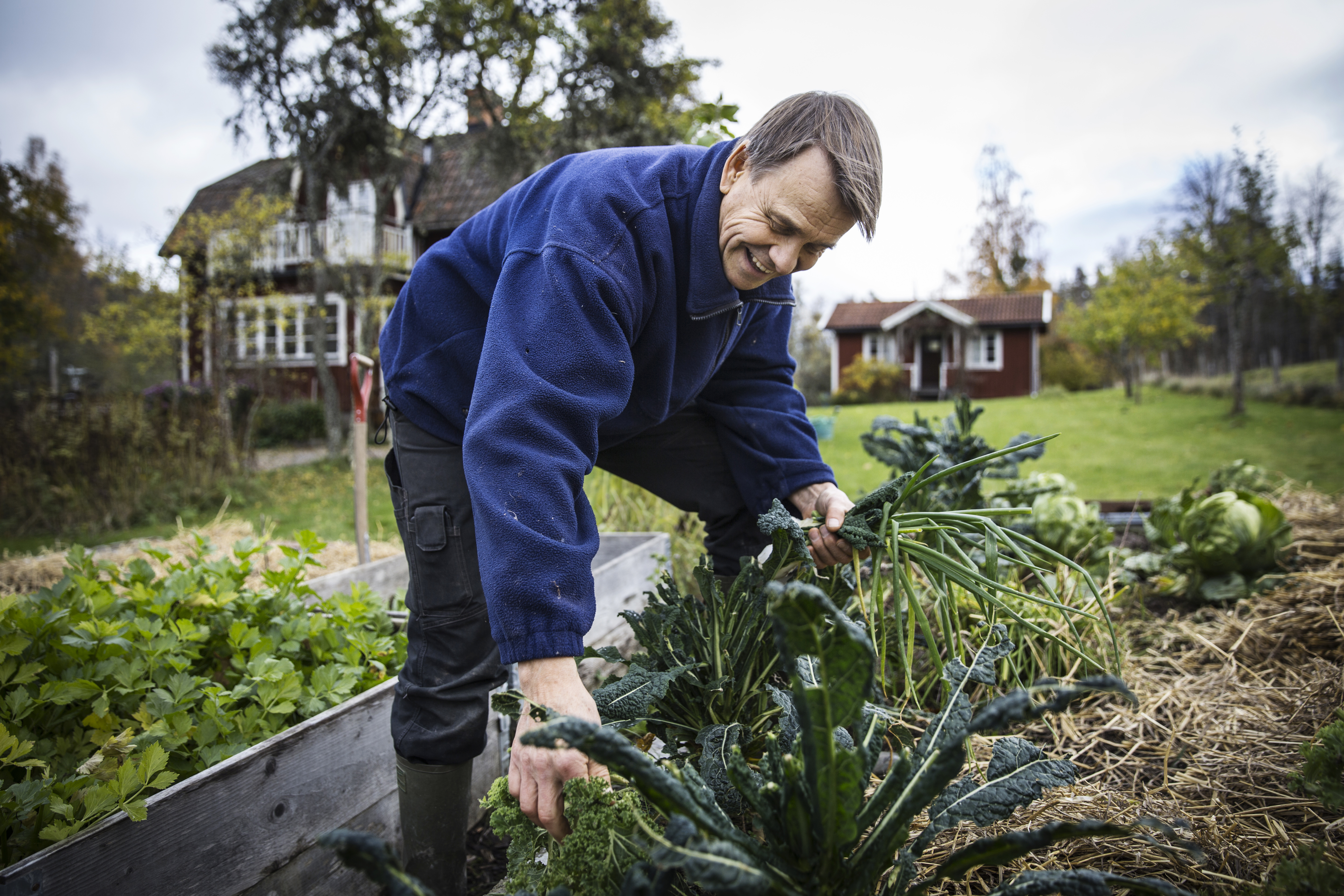 Men väl där på kökssoffan, liksom ute i trädgården och i kohagen (grannarnas kor), visar han en tydlig förnöjsamhet.