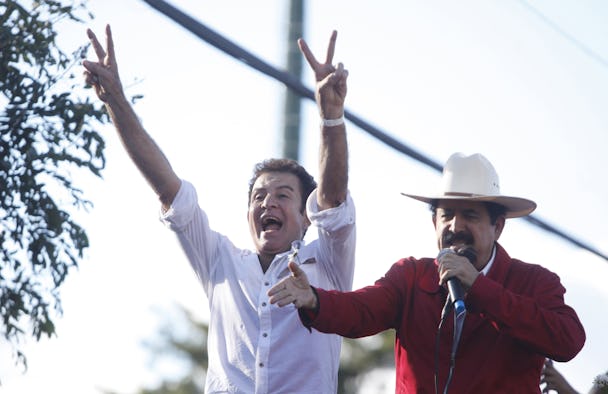 Tidigare presidenten Manuel Zelaya störtades 2009. Här talar han inför demonstranter efter presidentvalet 25 november.
