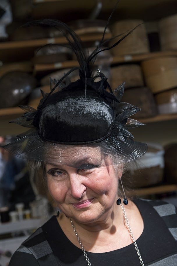 – Jag kan ju inte släppa ut en människa härifrån som inte är snygg i sin hatt, säger hon.