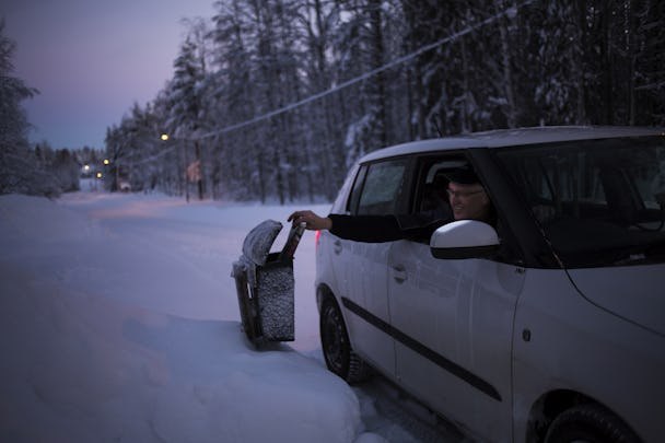 Ibland måste man bara veta var brevlådan är längs med vägen för den är omöjlig att se. ”Du får skriva att folk måste bli bättre på att skotta fram sina brevlådor. Mitt jobb tar dubbelt så lång tid annars”.