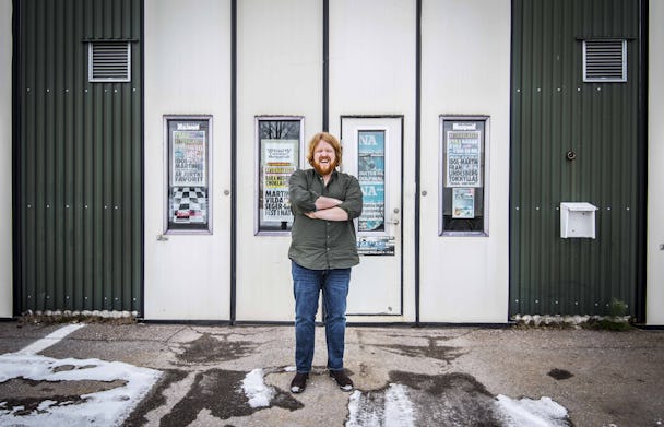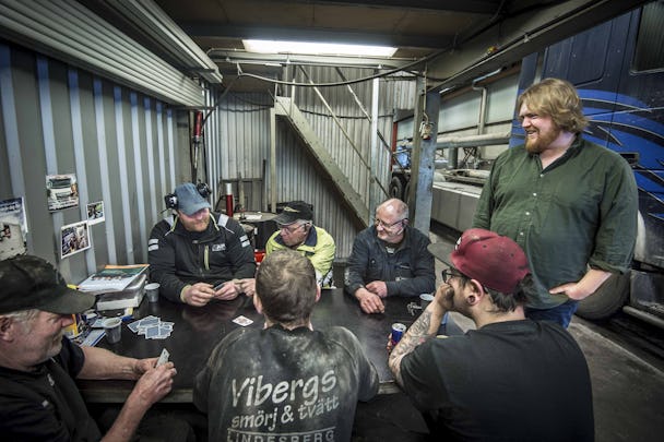 Han svänger in på den stora asfaltsplanen framför lastbilsverkstaden, där hans far haft ett åkeriföretag sedan 1970-talet.