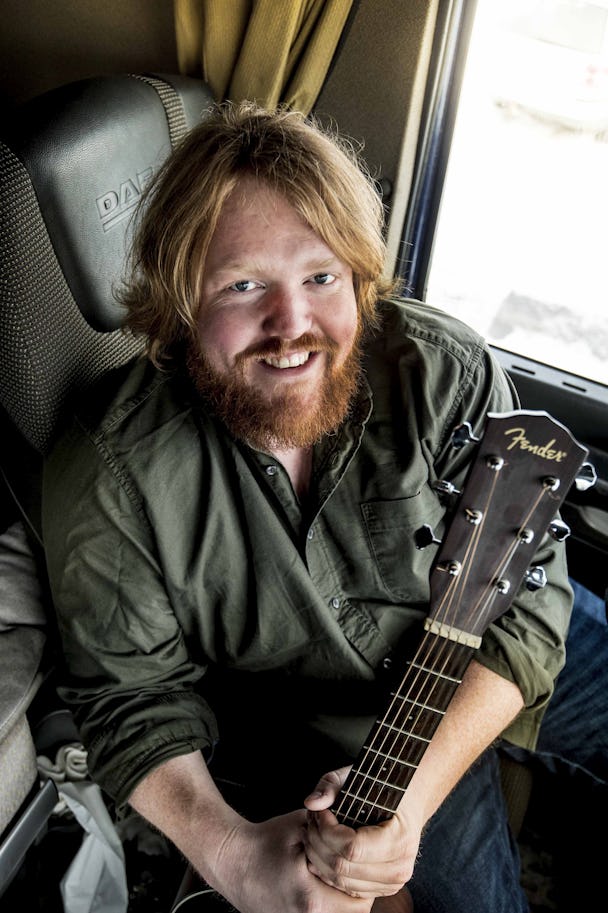 Martin Almgren står mitt emellan jobbet som lastbilschaufför och musiker. På lördag tävlar han i finalen i Melodifestivalen 2018.