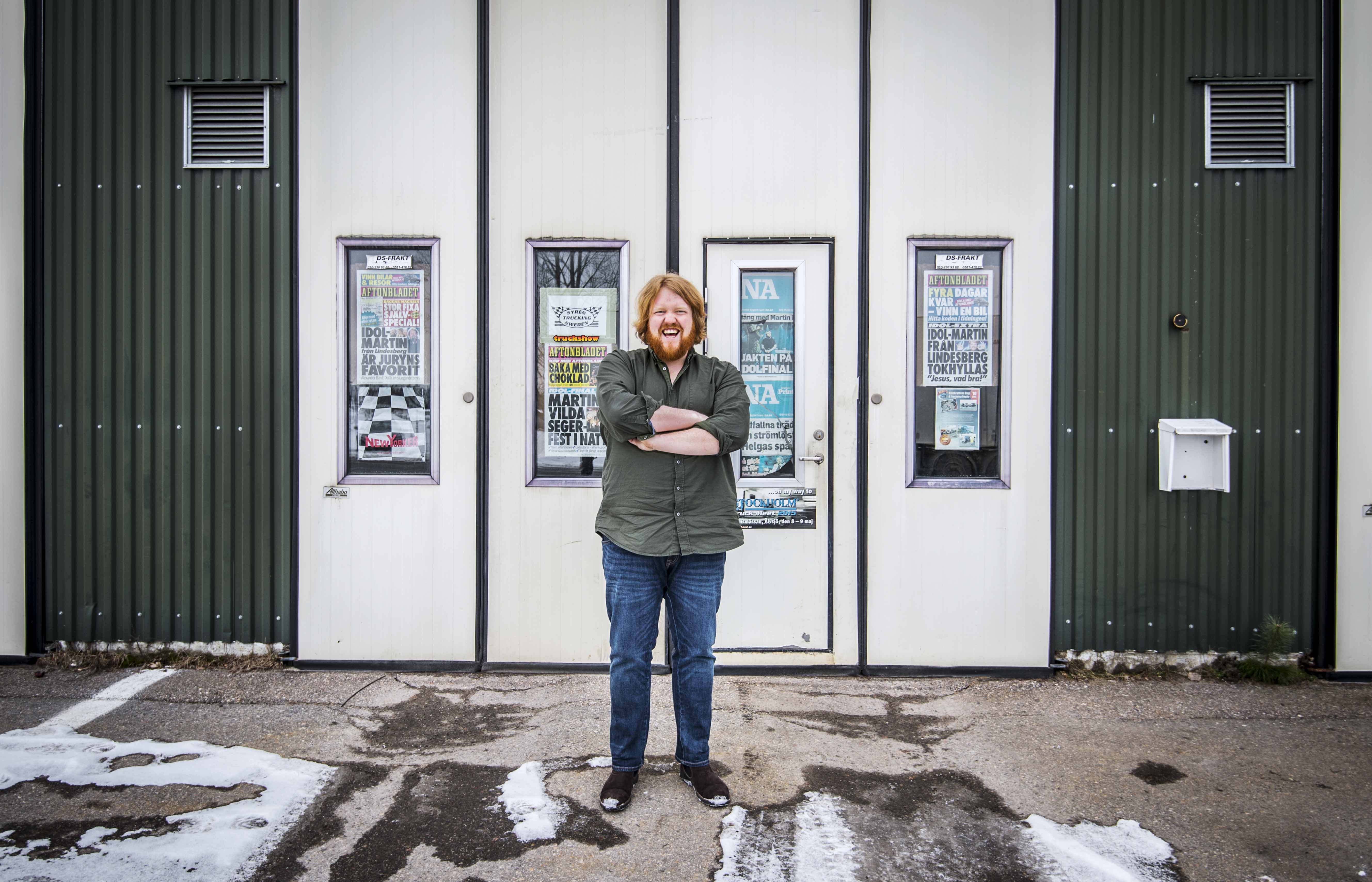 På verkstan har kompisarna hängt upp Martin-löpen. – Idoljuryn sa inte något om mitt utseende. Bara när jag hade en åtta nummer för liten skinnjacka, det får man väl ta som en välgärning.