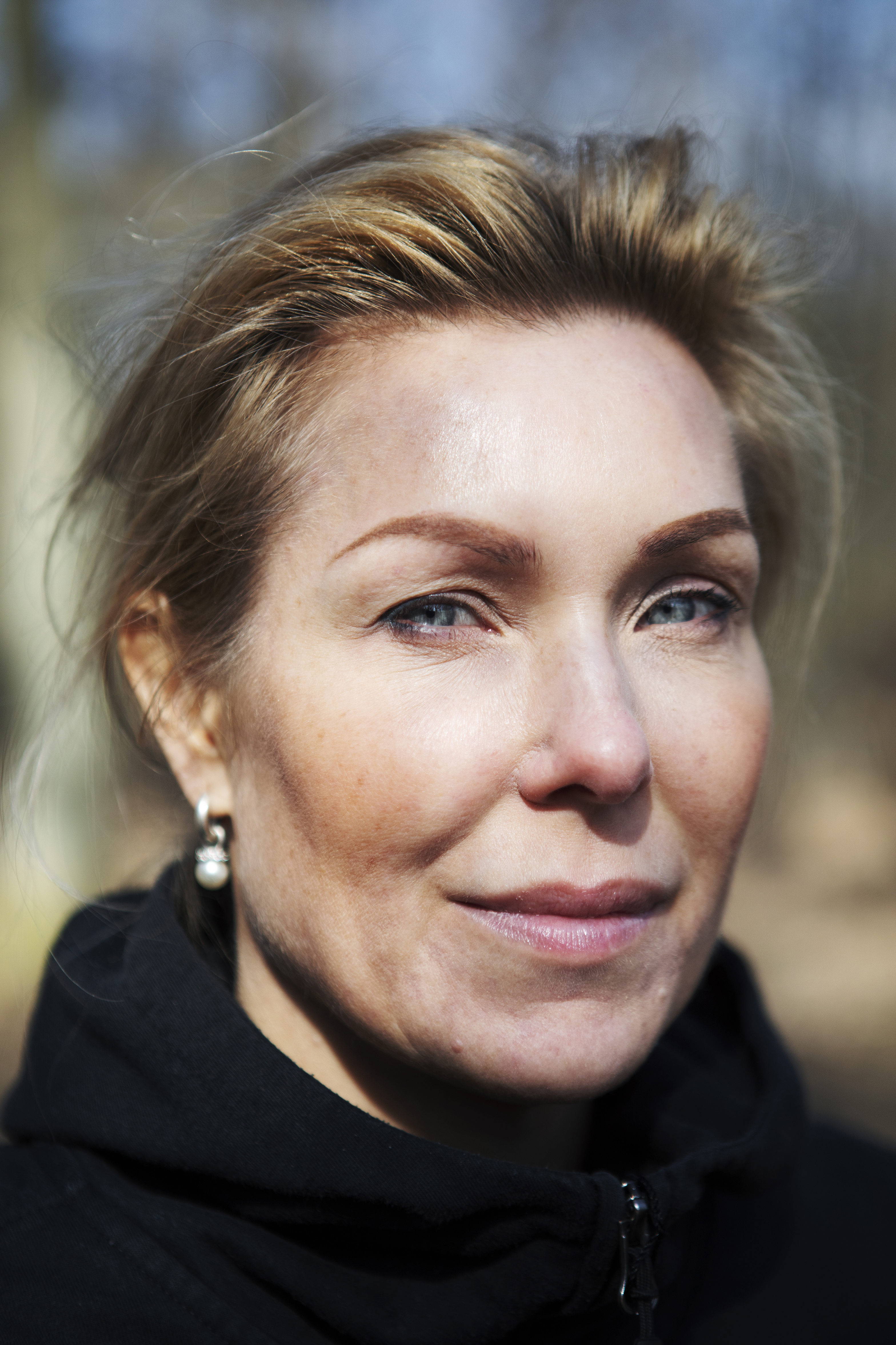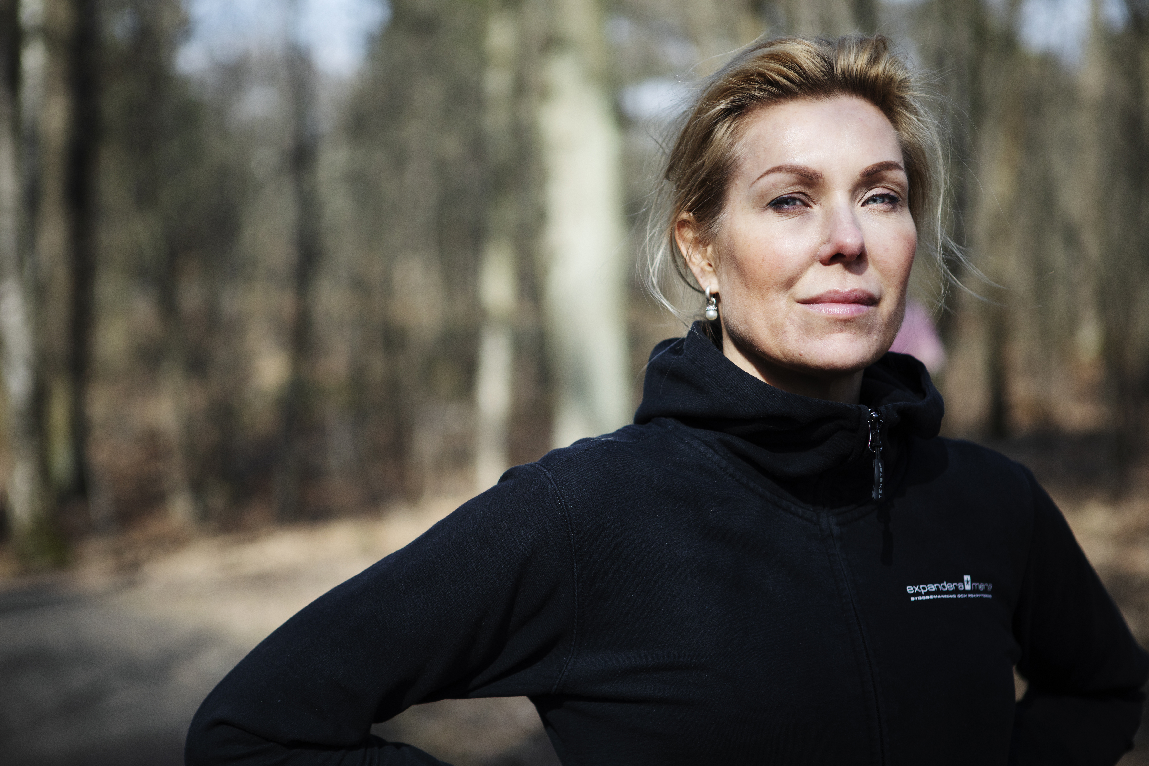 Hon är på väg i svarta löparkläder och färgglada skor mot skogen bakom Stockholms stadion, som ligger intill kontoret.