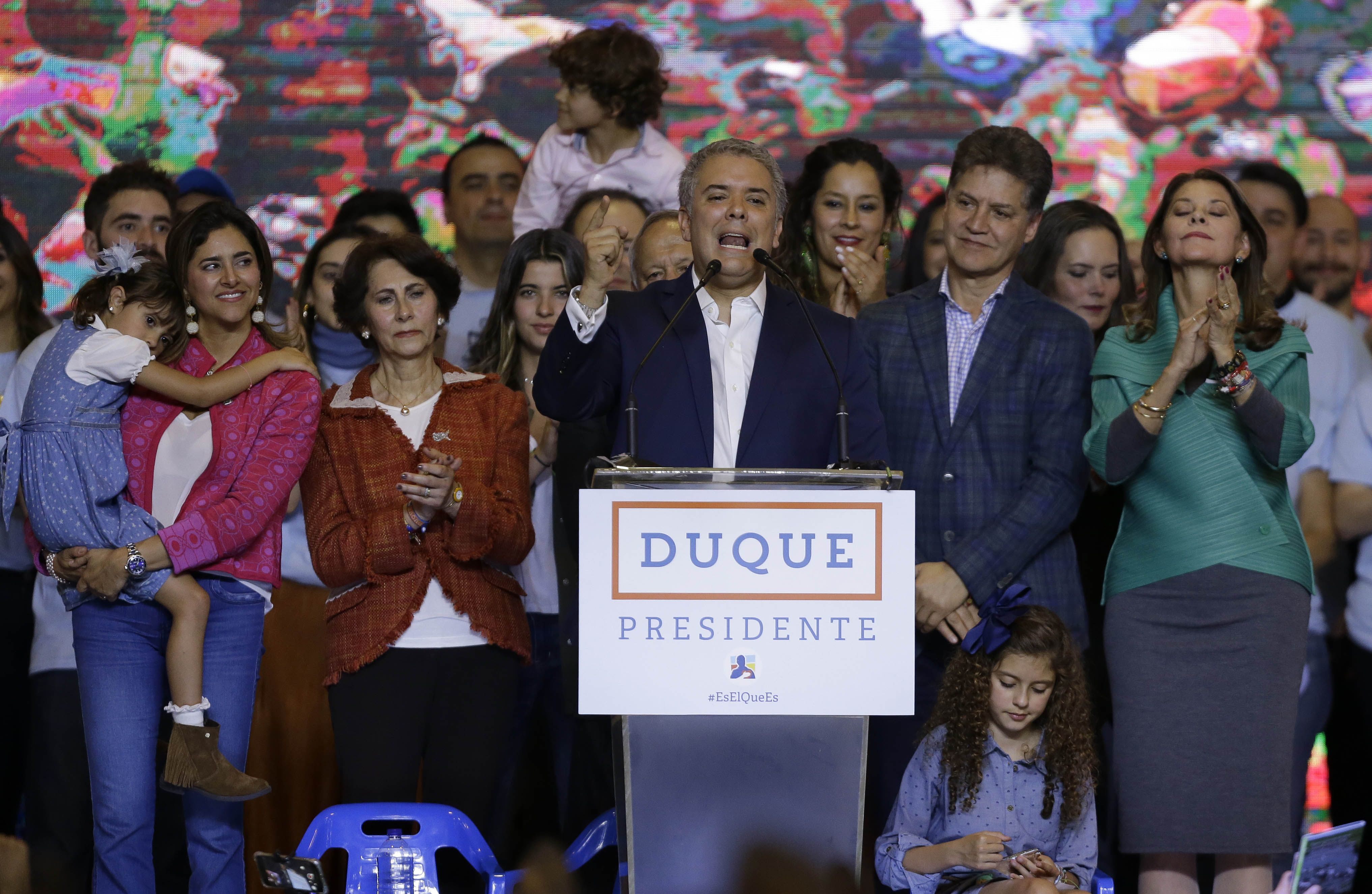 Högerkandidaten Iván Duque gick segrande ur söndagens presidentval i Colombia.