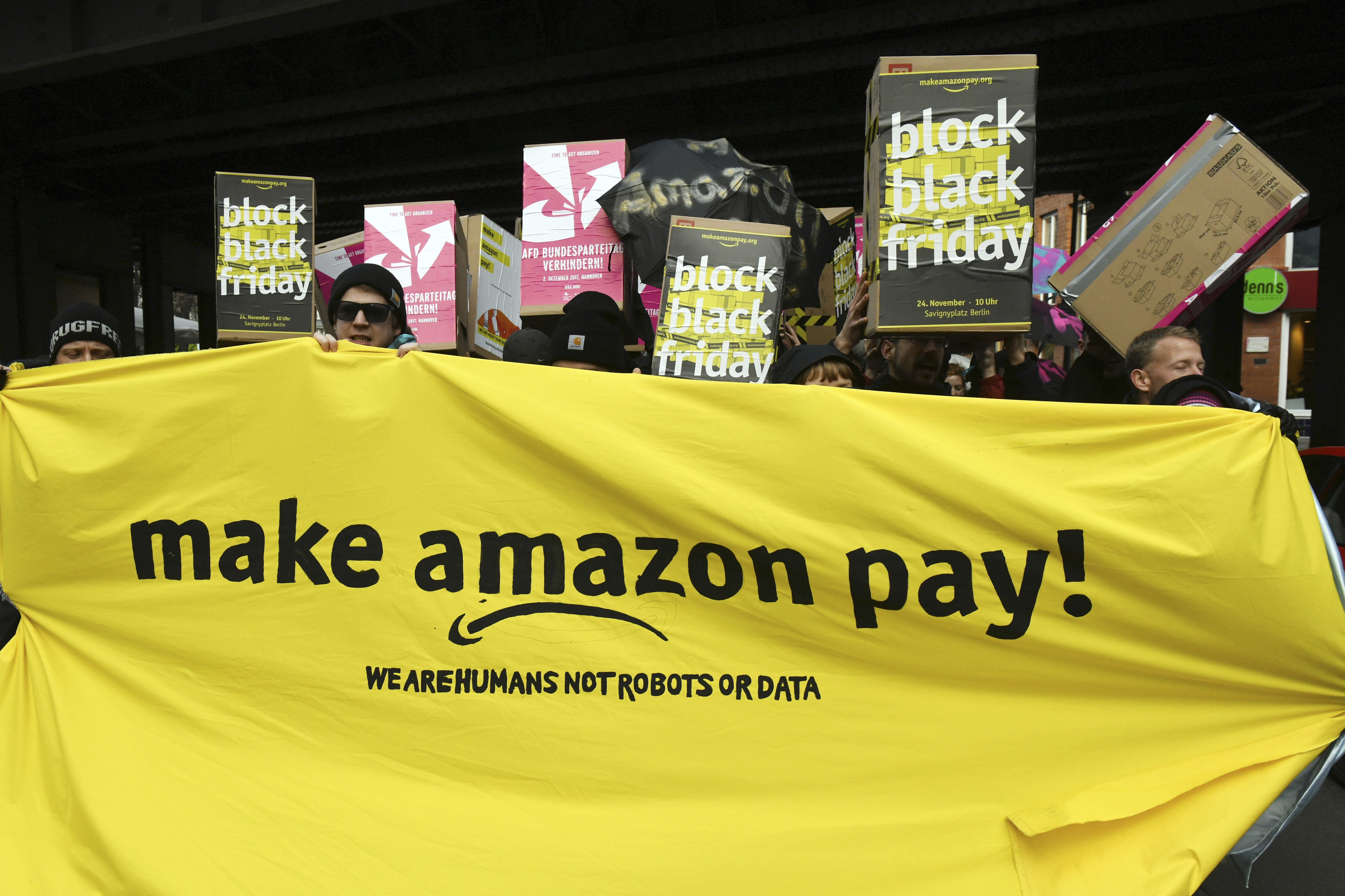 Tyska Amazonanställda strejkade i Berlin i november, en av många konflikter kring löner och villkor på e-handelsjätten.