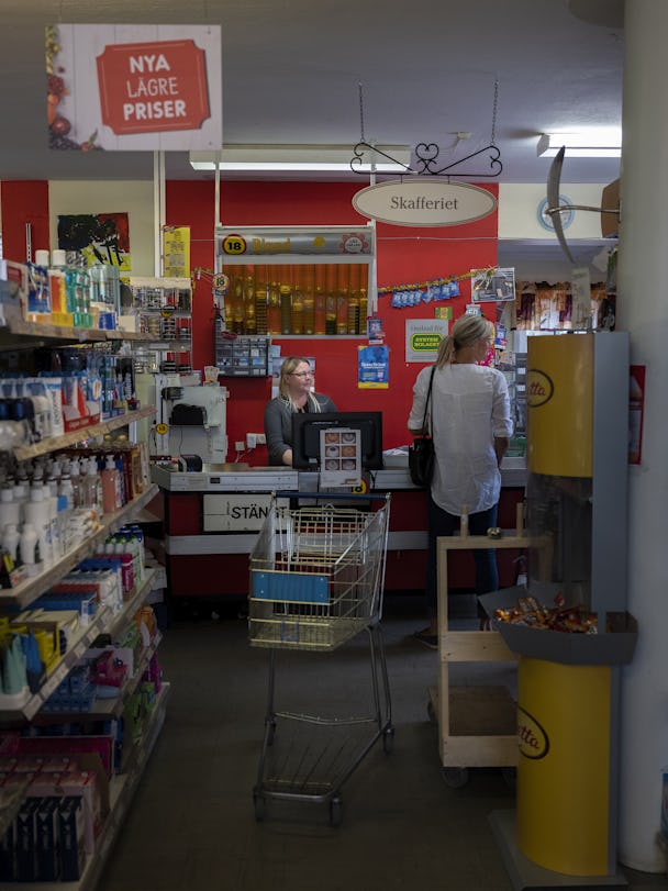 I Nyåker besöker fotograf Nora Lorek Handlar’n, Nyåkers enda affär och mötesplats.