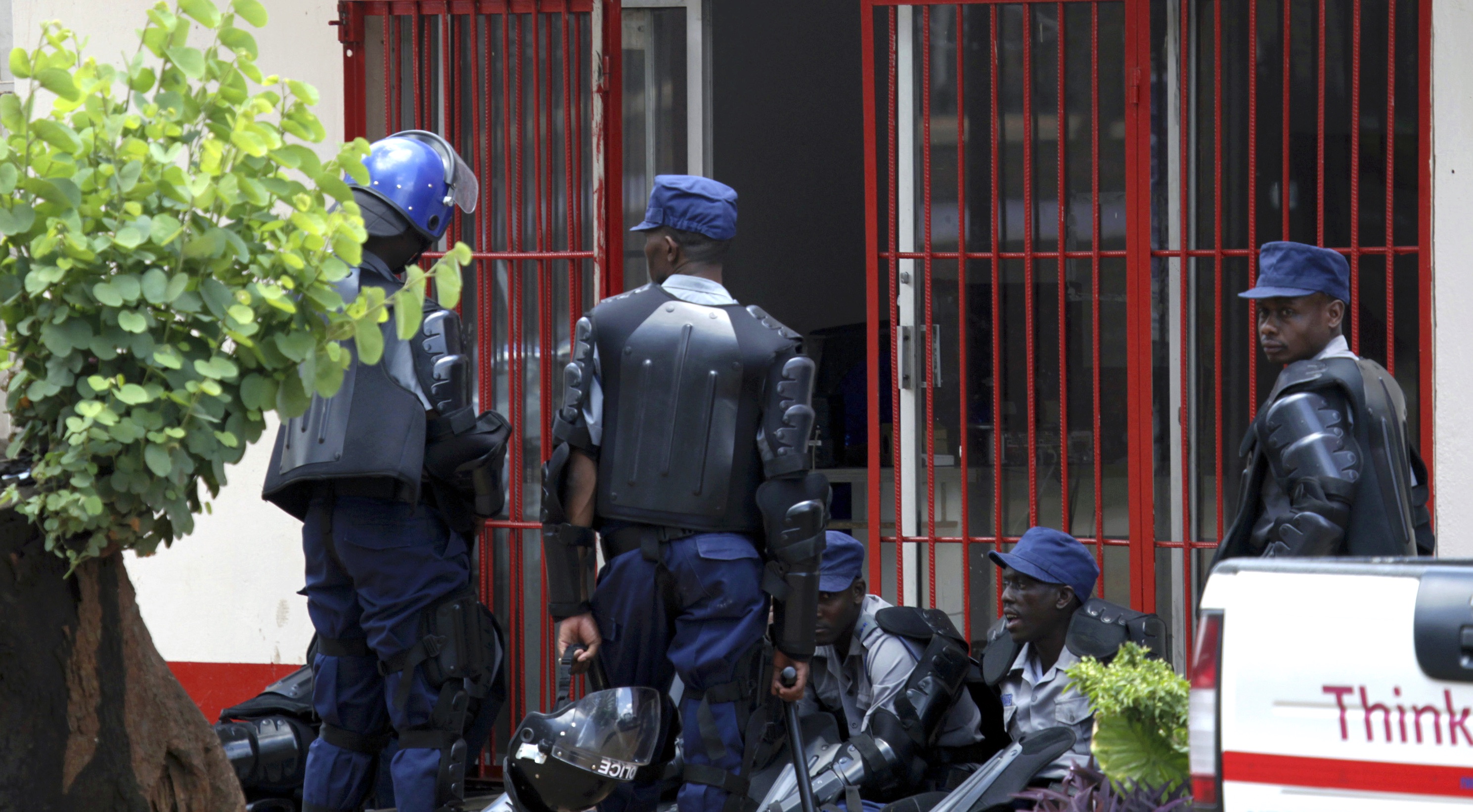 Kravallpolis stormar ZCTU:s kontor i Harare.