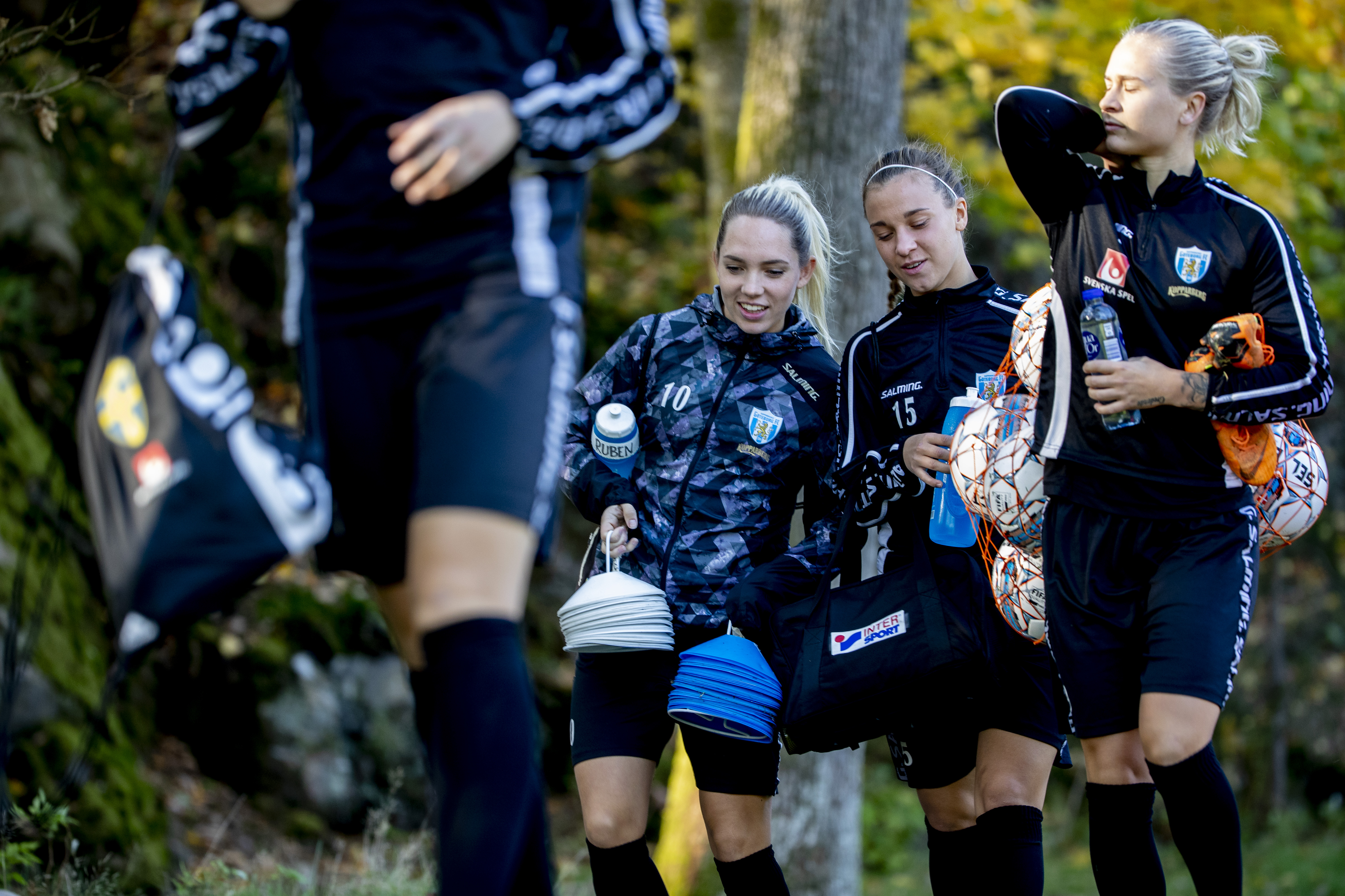 Elin Rubensson, här med medspelarna Amanda Johnsson och Filippa Curmark, beskriver stämningen i Kopparbergs/Göteborg FC som familjär.