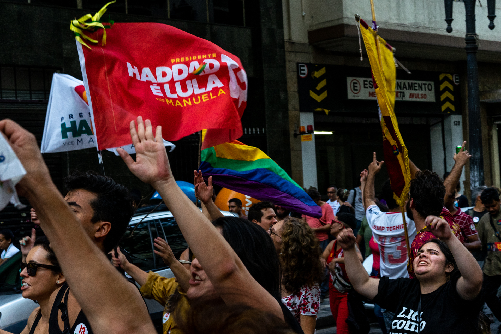 På lördagskvällen, dagen innan valet, fylldes gatorna i São Paulo, landets största stad, av samba och sång när tusentals tågade under parollen ”Kärlek, mod, lycka.”