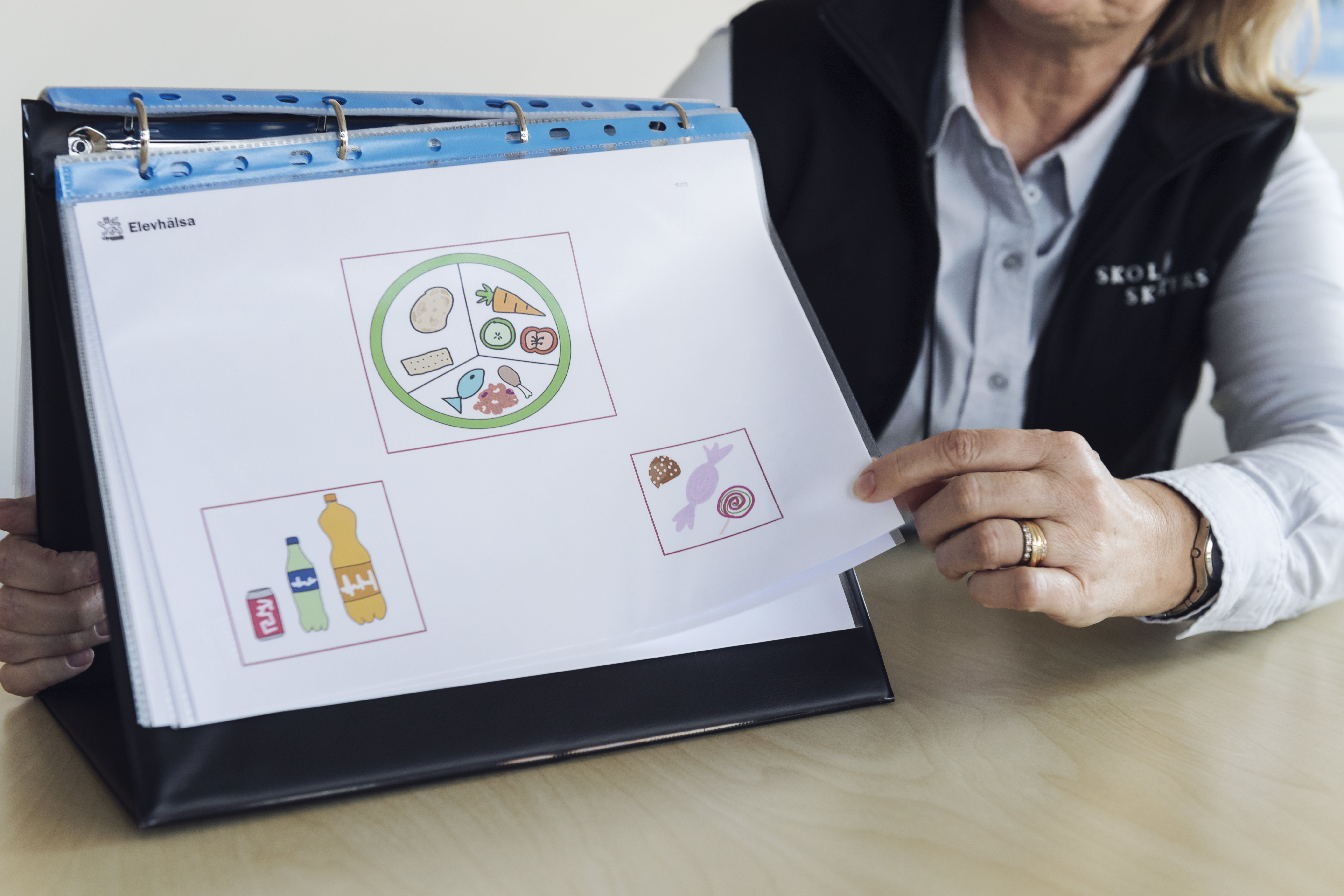 Hälsobesök innefattande hälsosamtal, som tar ungefär 45 minuter per elev inklusive dokumentation. Gör bland annat tillväxtkontroll och samtalar med elev utifrån hälsoenkät.