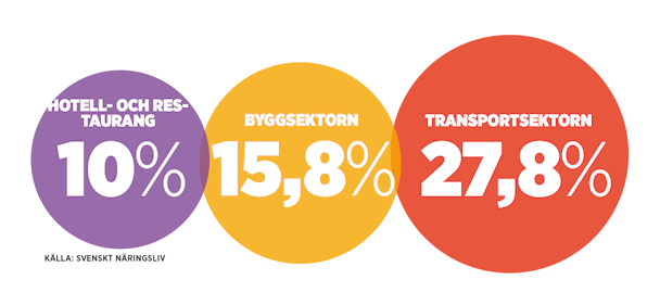 I byggsektorn har 15,8 procent rörlig lön och i handeln samt hotell och restaurangbranschen låg siffran på 10 procent.