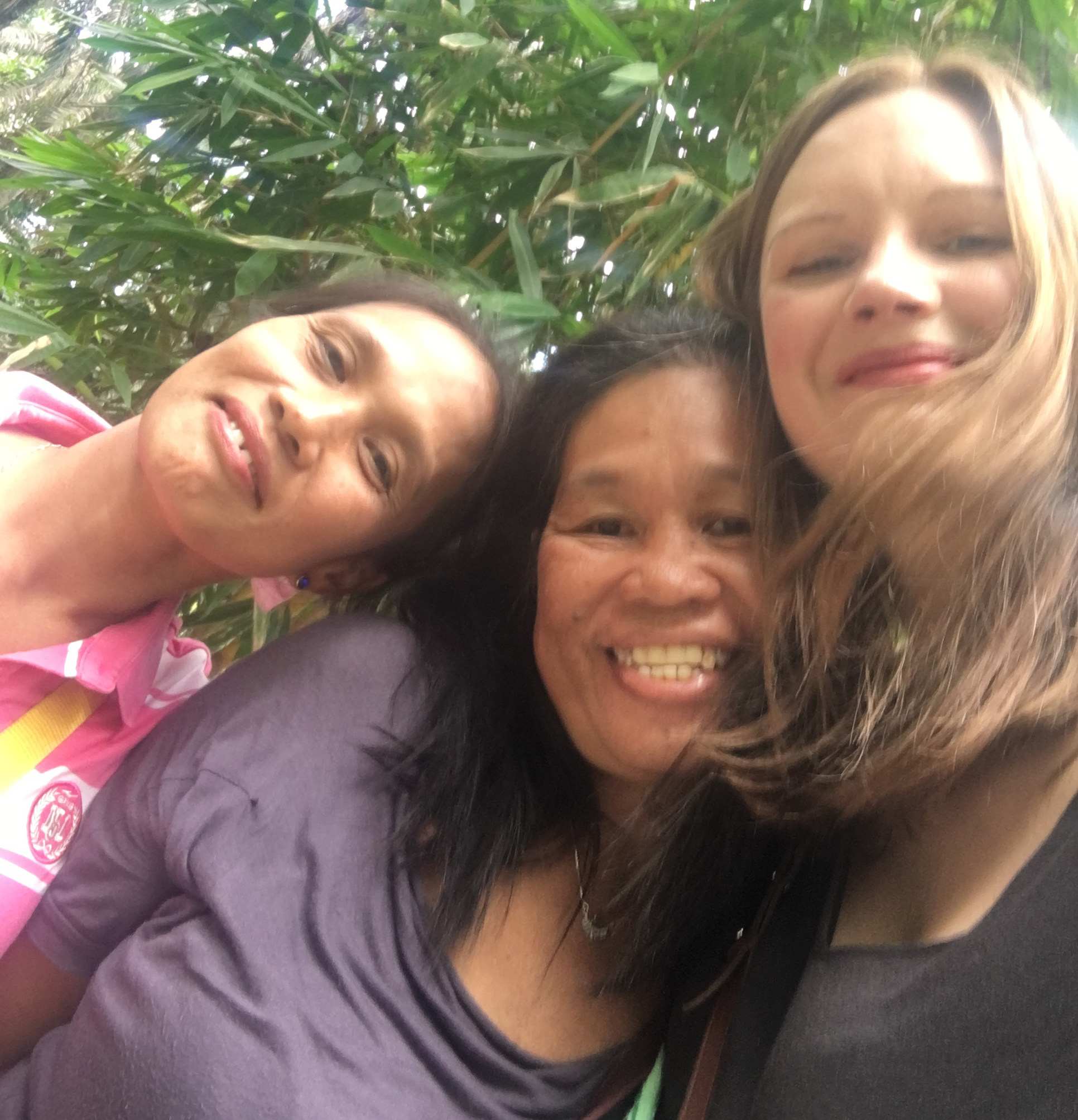 På den här bilden ler jag och de två kvinnorna bredvid mig, Lorena och Emy. En egentligen helt missvisande bild.