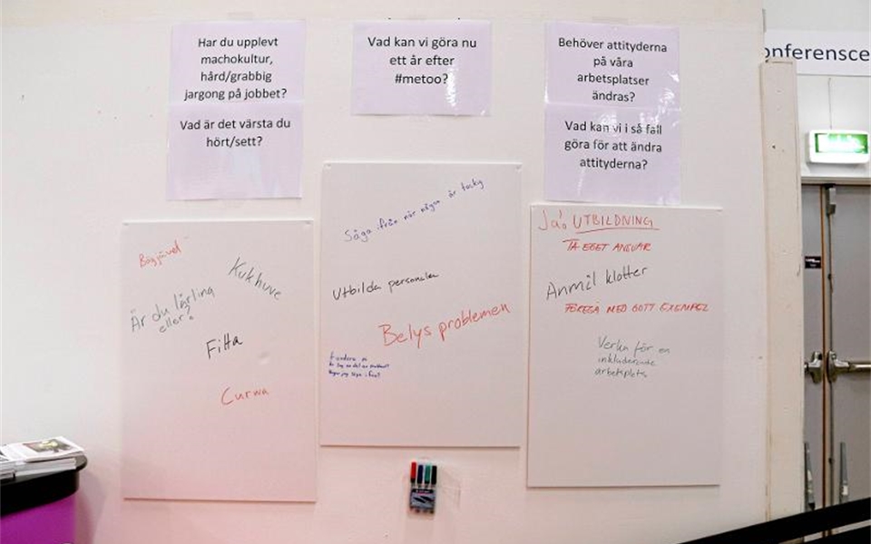 Besökarna fick diskutera jargongen på arbetsplatserna i branschen. Vad kan vi göra för att ändra attityderna? Foto: Anna Norling