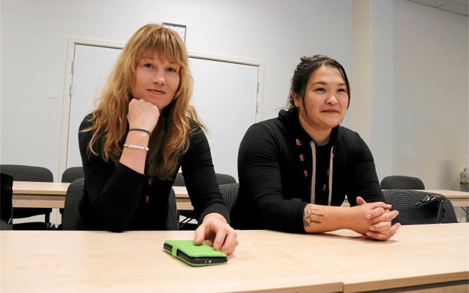 Erika Plahn och Linn Alvinsson, Ludvika elinstallation, deltog under Elqvinnornas seminiarium om ergonomi för kvinnor i byggbranschen. Foto: Anna Norling