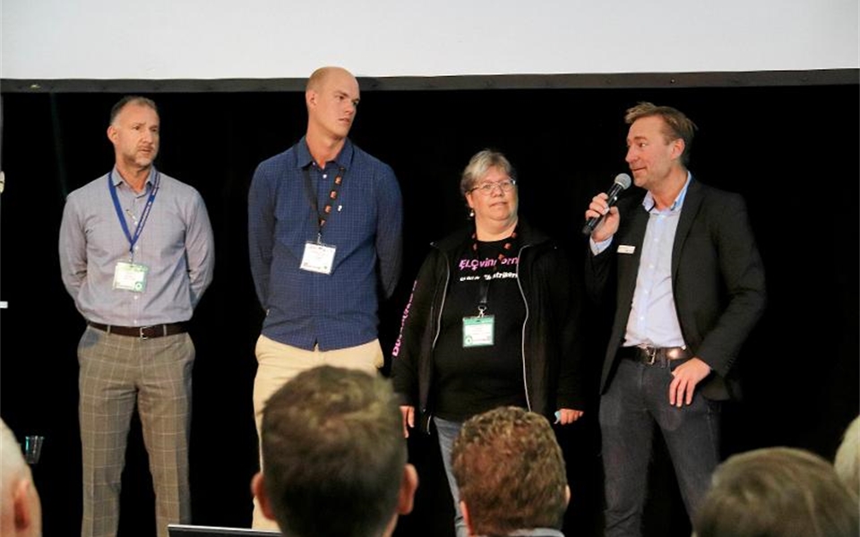 Juryn för bästa nyhet under mässan: Ivan Ahlbom, Elinstallatören, Claes Thim och Ninni Blom Elektrikerförbundet, och Jörgen Stjernlöf, Elmässan. Foto: Anna Norling