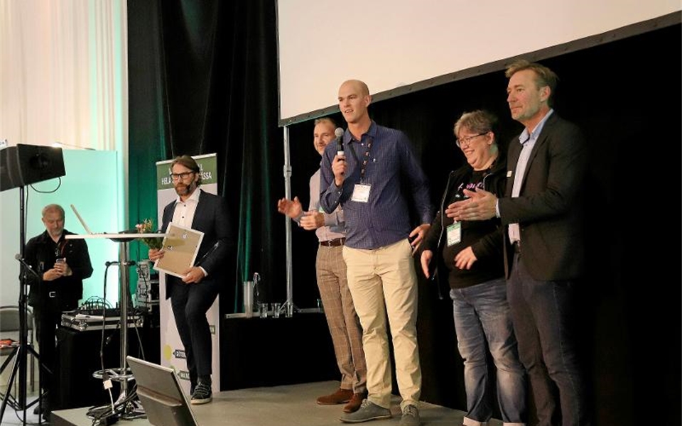 I juryn för bästa nyhet under mässan satt bland andra Claes Thim och Ninni Blom, VK1. Här är de i färd med att dela ut pris tillsammans med hockeylegendaren Peter Foppa Forsberg. Foto: Anna Norling