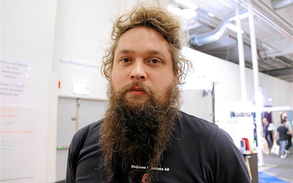 Joel Sand Remes, montör Röjdares elektriska:– Faktiskt inte. Jag trodde jag skulle hitta något nytt, men det har jag inte gjort hittills. Foto: Anna Norling