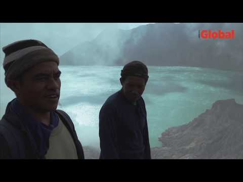 Detta är den enda gruvan i världen där svavel fortfarande bryts för hand. Gruvan är insvepta i stickande svavelrök samtidigt som turister i gasmask flockas för att ta selfies där arbetare jobbar i bakgrunden.