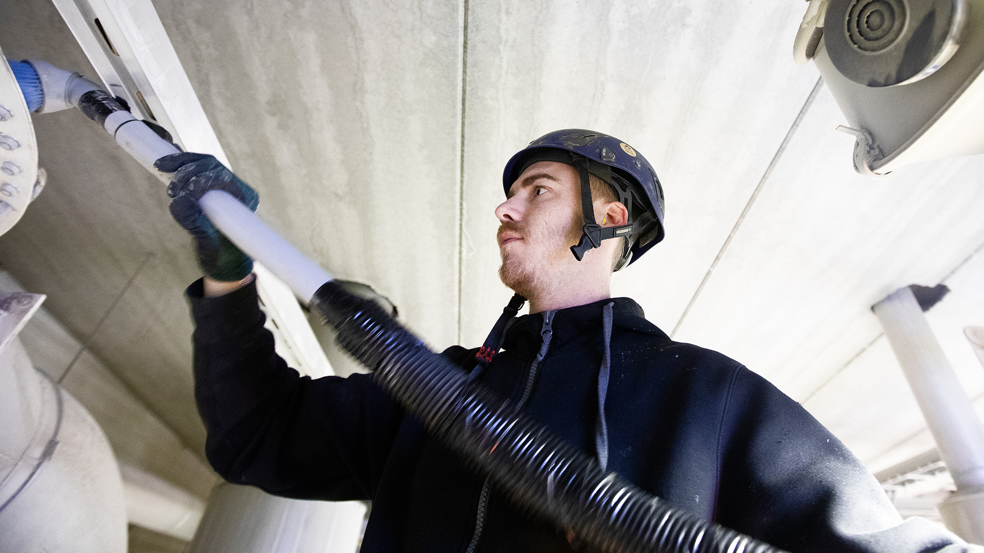 Eddie Thörnwalls arbetskläder är mycket viktiga för att skydda honom från att skada sig, om han skulle råka få högtrycksstrålen på sig.